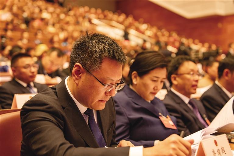 与会人员认真聆听《政府工作报告》。