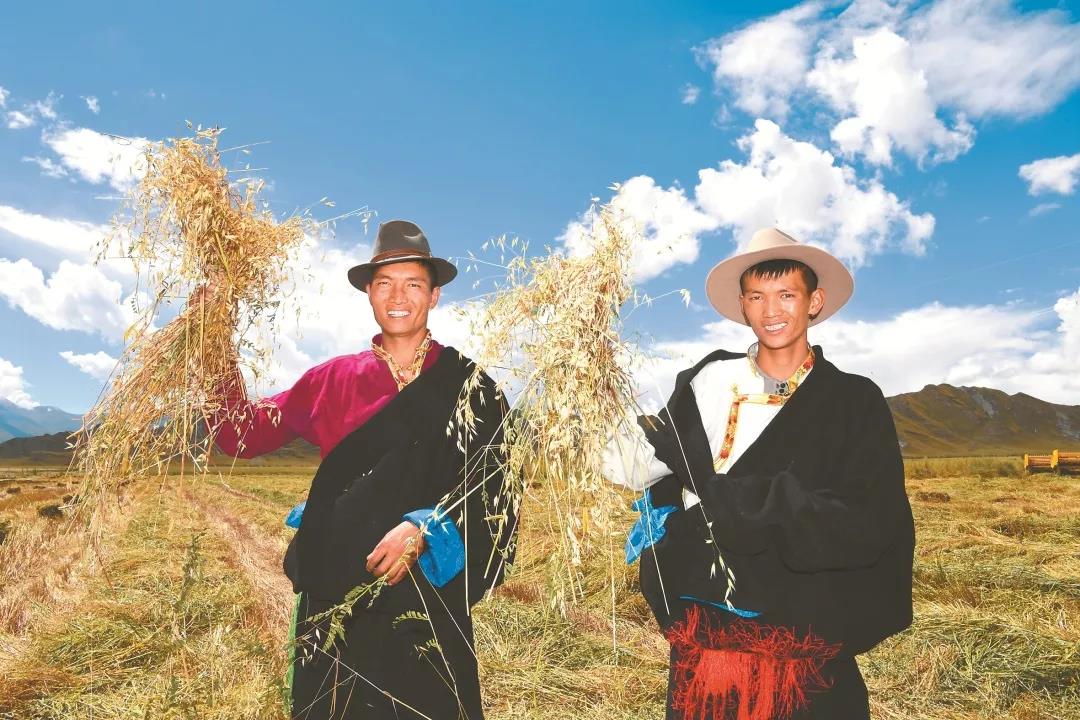 拉萨市林周县松盘乡松盘村群众在收割燕麦。记者 白娟 李洲 摄(资料图)